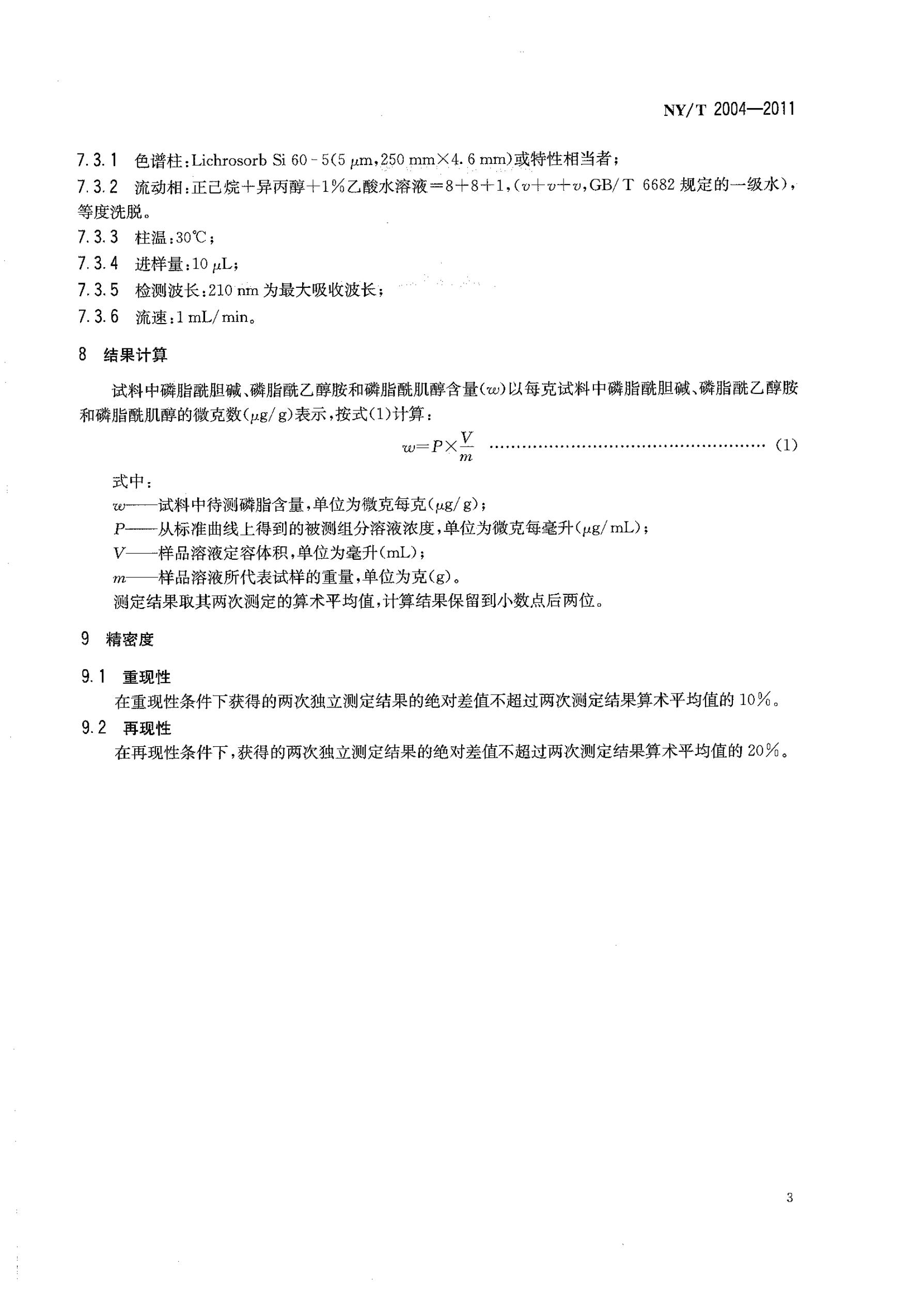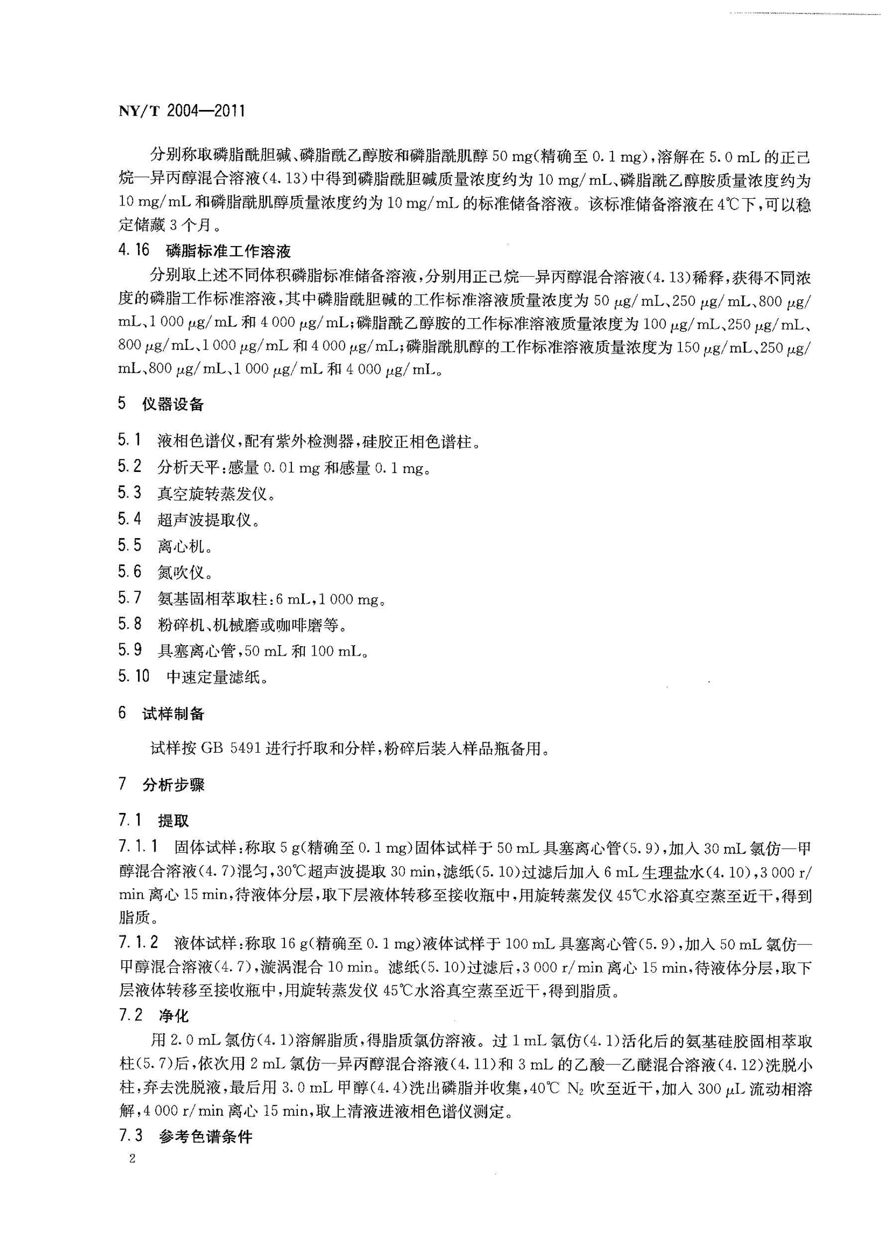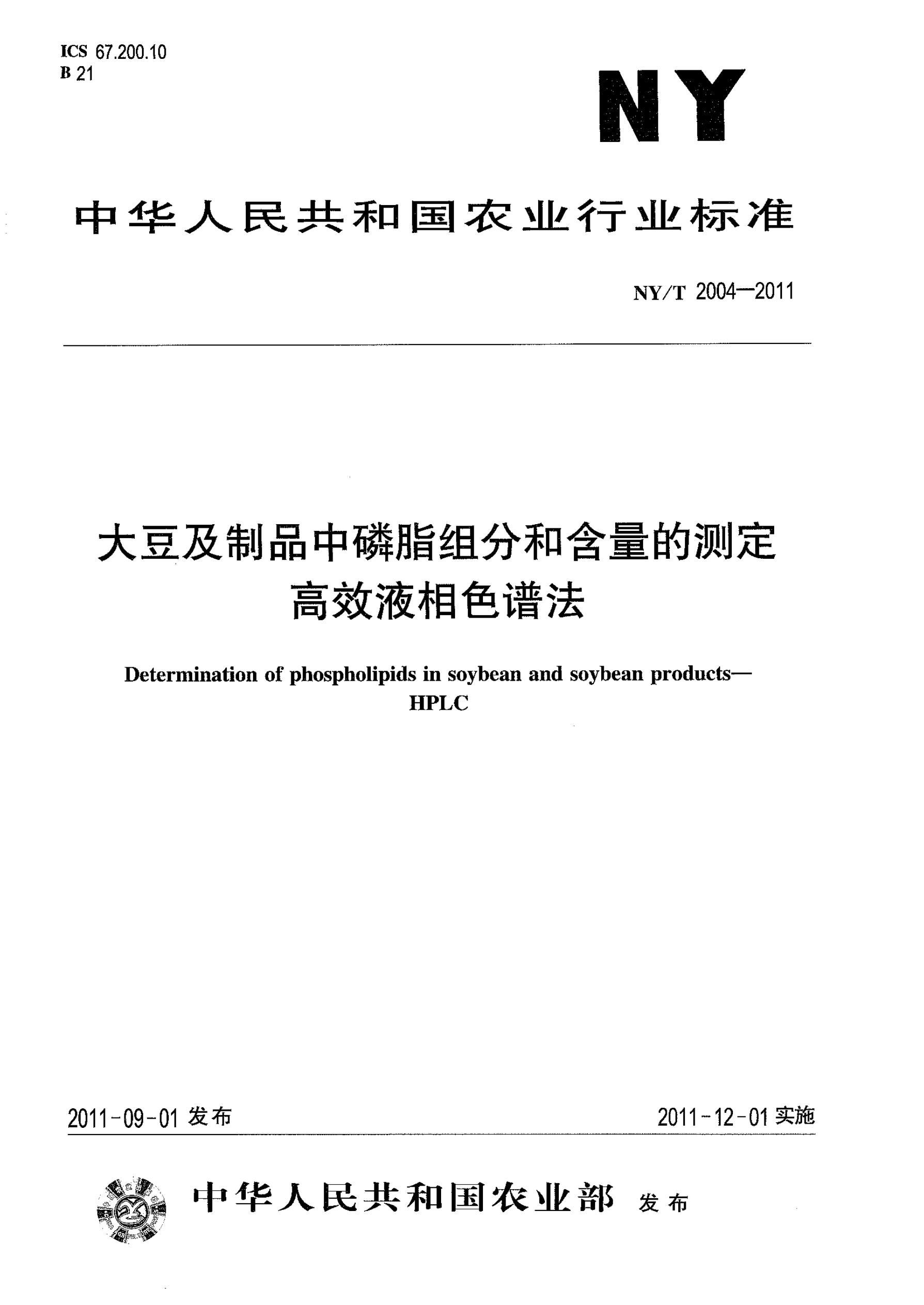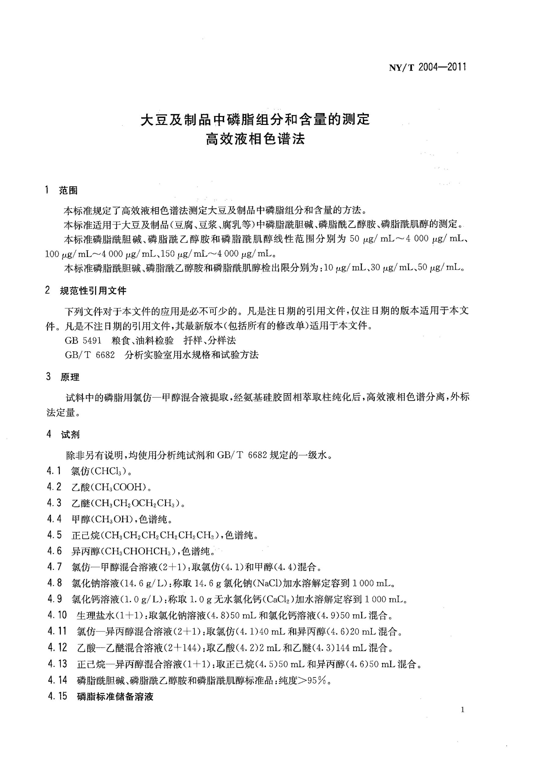 大豆及制品中磷脂組分和含量的測定NY/T 2004-2011